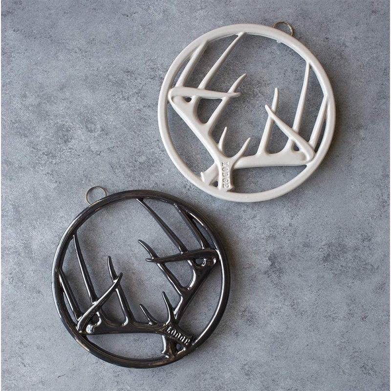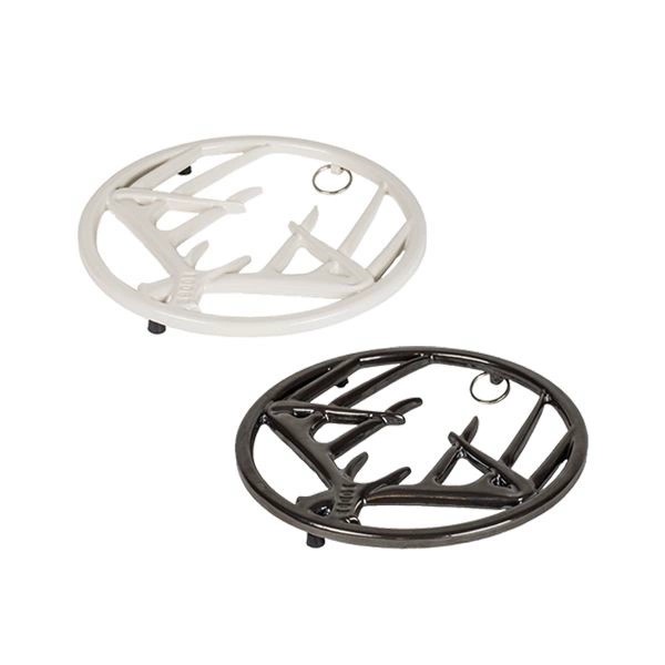 Enameled cast iron antler trivet has a unique design inspired by wild nature.