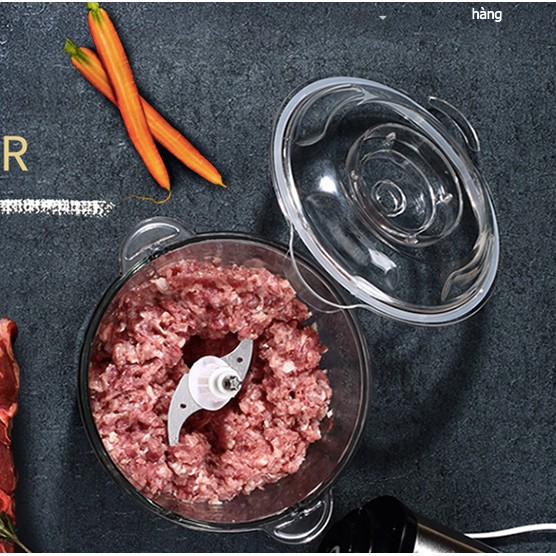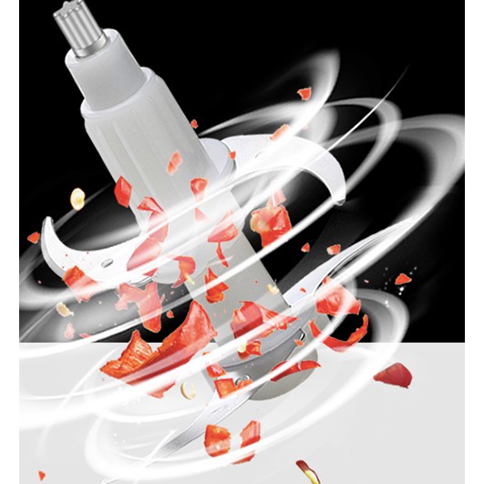 - 2 lưỡi dao xay bằng thép siêu bén, cối xay bằng chất liệu rất an toàn cho người dùng và chống va đập tốt. Cối xay thịt lớn giúp bạn có thể xay 300g thịt chỉ mất vài giây vì cối được thiết kế với 2 lưỡi dao chắc chắn chống gỉ sét xay kết hợp.