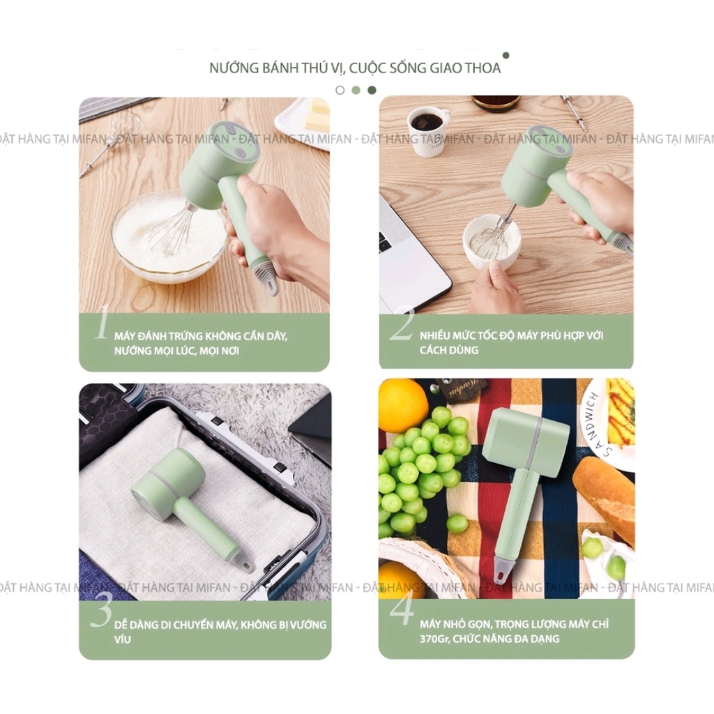 [LỖI 1 ĐỔI 1]Máy đánh trứng cầm tay kiêm máy xay thịt, tỏi ớt đa năng phiên bản mới nhất năm 2021 của MIFAN