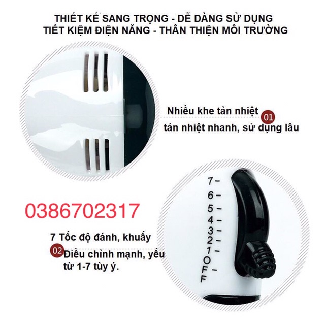 👉Máy có 7 tốc độ đánh trứng và nhào bột khác nhau giúp người sử dụng thoải mái lựa chọn mức độ đánh phù hợp.