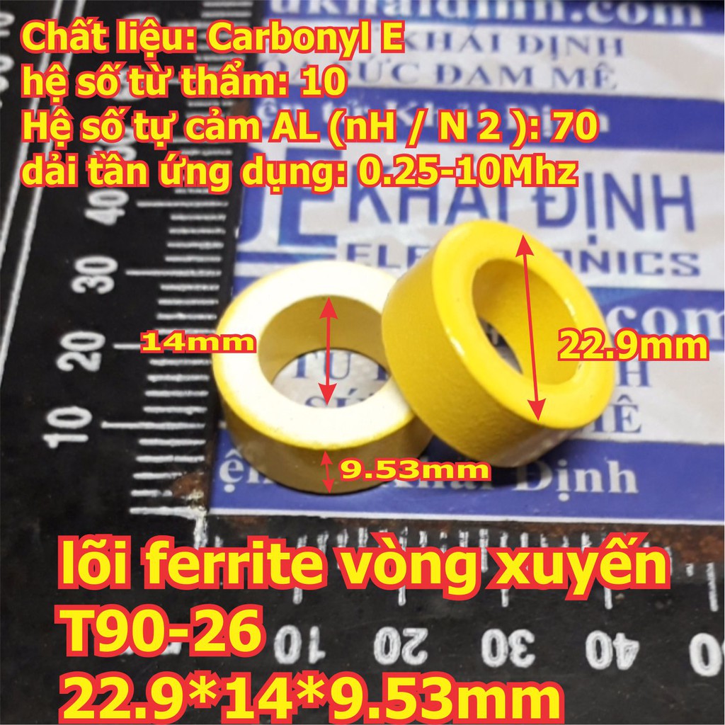 lõi ferrite vòng xuyến T90-26, 22.9*14*9.5mm, vàng
