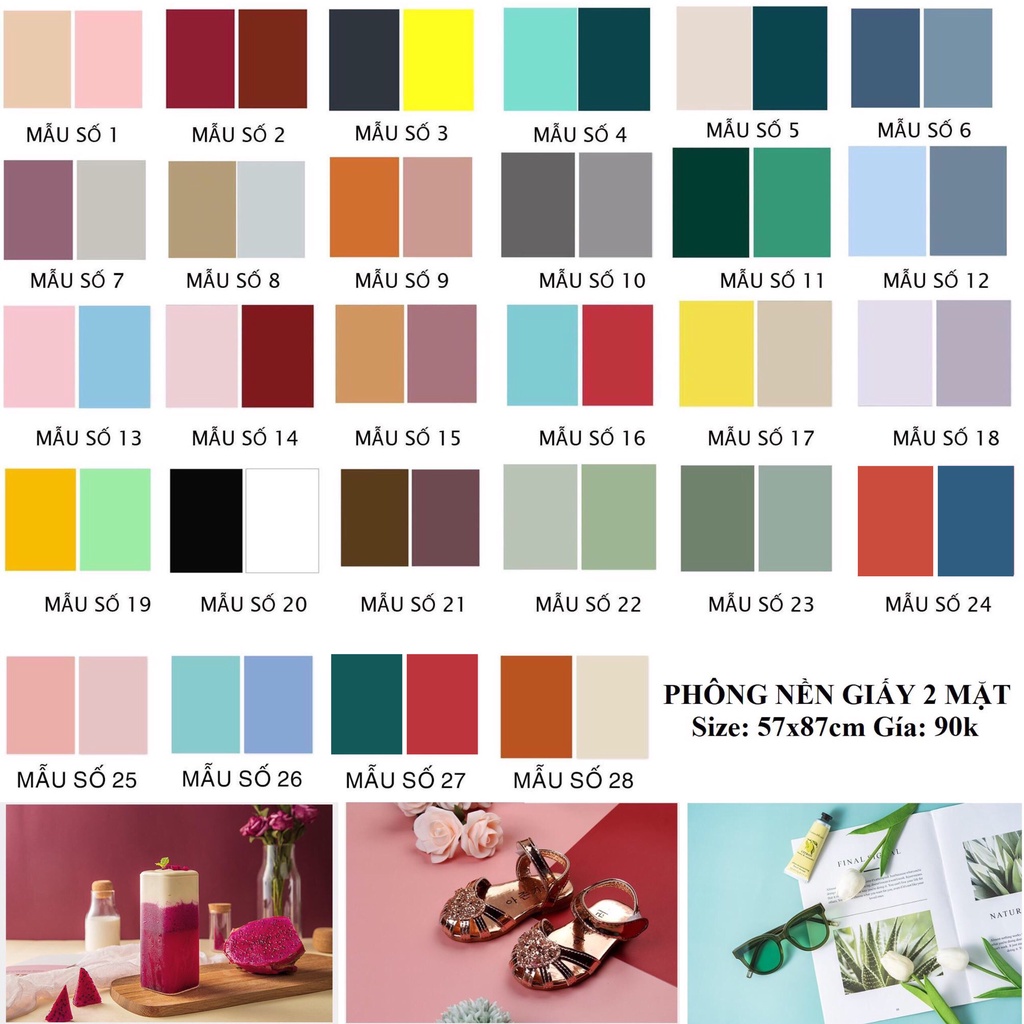 (Lỗi, hỏng đổi mới) Hàng Có Sẵn 28 Mẫu Phông Nền Chụp Ảnh Màu Trơn 2 Mặt Mới Nhất
