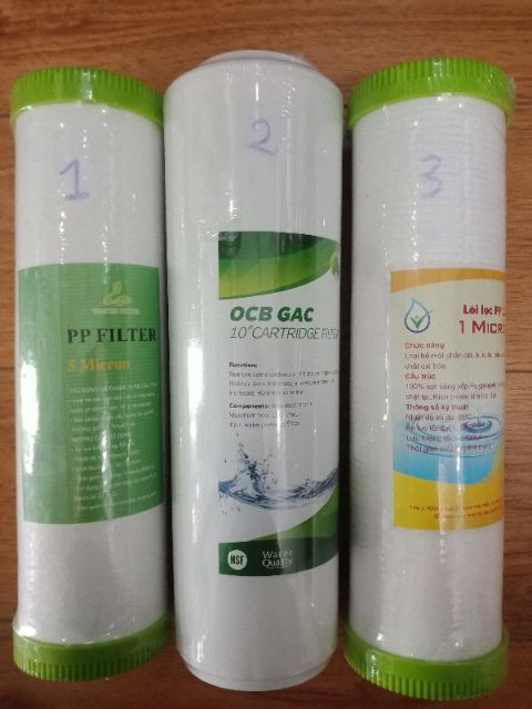 Bộ lõi lọc nước 1 2 3 lắp chung cho các loại máy lọc nước : Kang , karofi, auqa,tân á, Sunhouse...vvLõi 1 : pp 5micrơn