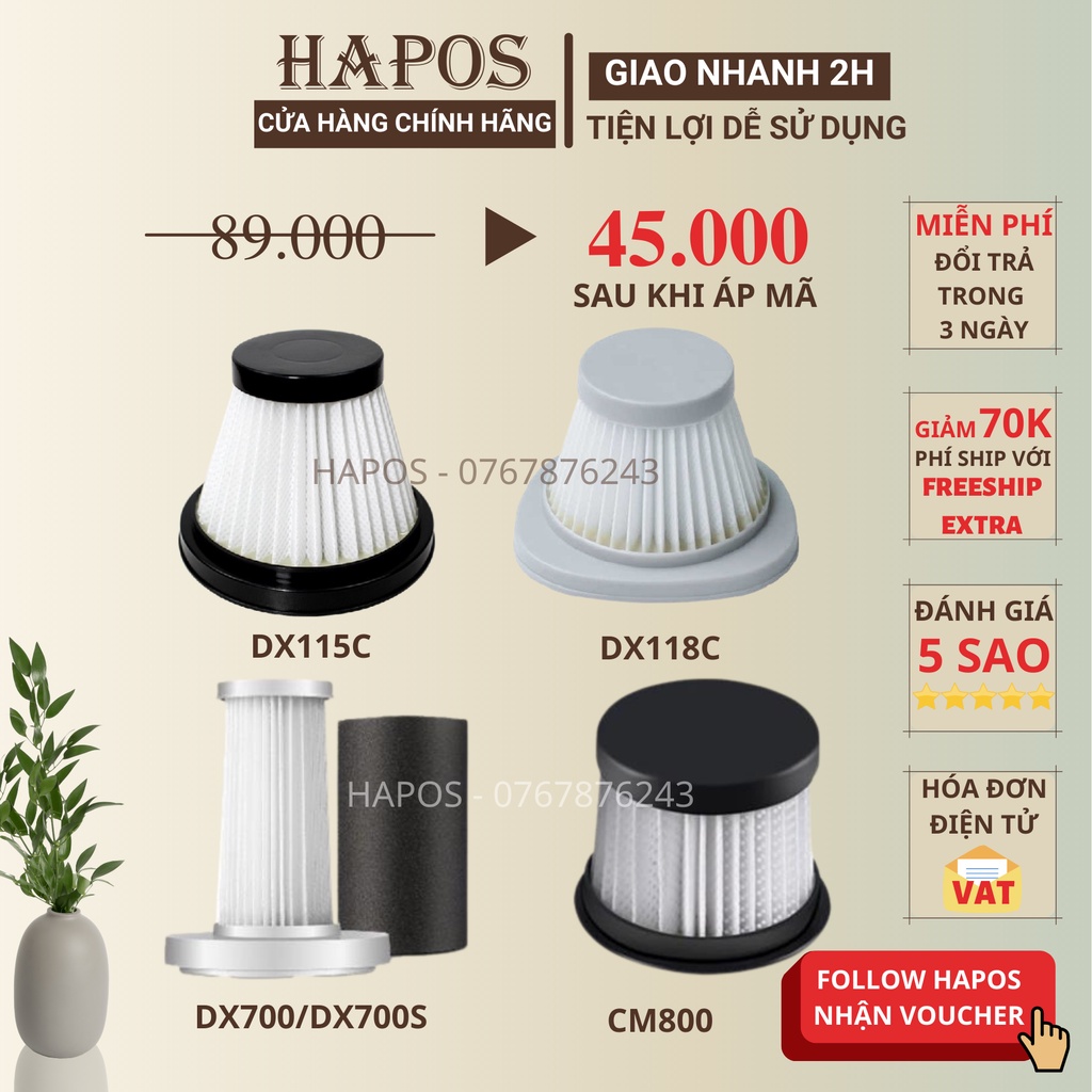 Thiết Bị Điện Gia Dụng > Thiết bị điện gia dụng nhỏ > Máy hút bụi & Thiết bị làm sạch sàn || Lõi lọc Hepa máy hút bụi Deerma Xiaomi CM800, DX700, DX115C, DX118C, DX700S, CM1300, CM1900,... - HAPOSCòn hàng