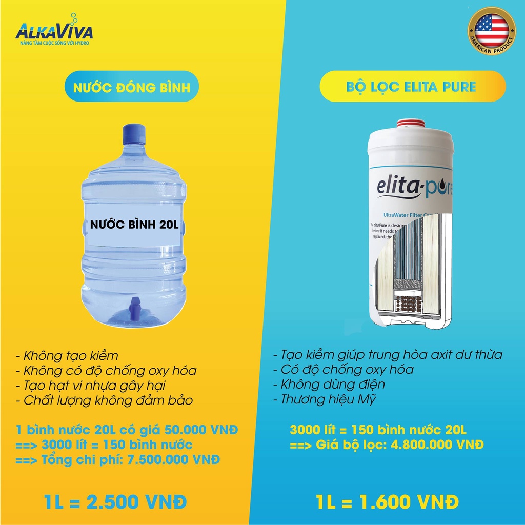BỘ LỌC NƯỚC TẠO KIỀM MÁY ELITA PURE- Dung tích lọc: 3000 lít = 150 bình nước 20L
