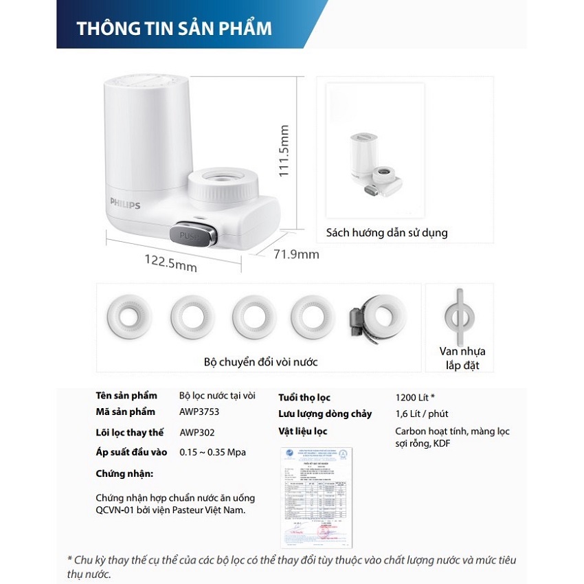 Thông số kỹ thuật Thiết bị máy lọc nước tại vòi Philips AWP3753