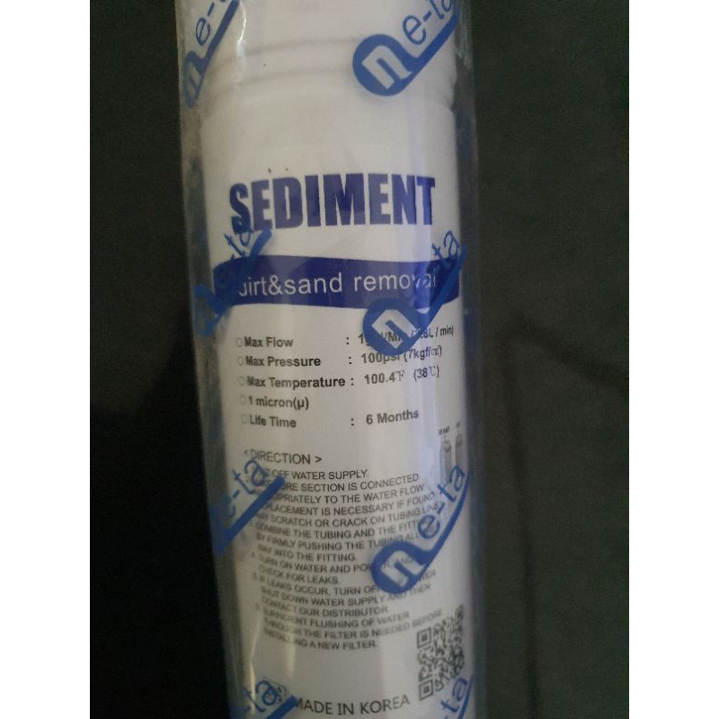 Lõi lọc SEDIMENT (lõi số 1) giúp lọc các chất cặn thô, bảo vệ màng lọc RO không bị tắc.Thông số kỹ thuật