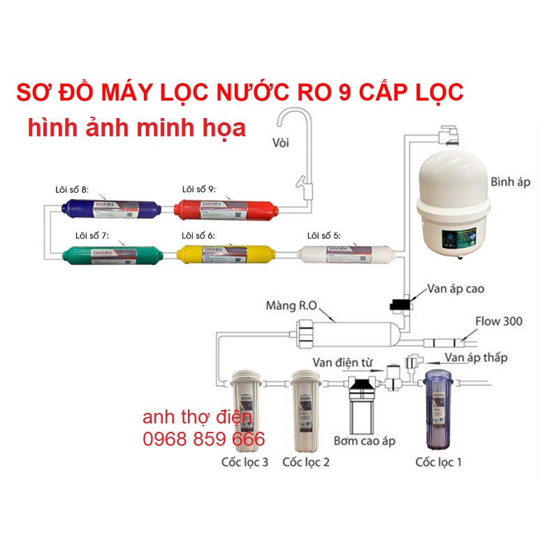 Lưu ý : Sau khi lắp đặt cần xả bỏ 20 phút trước khi sử dụng . Lắp sau màng Ro