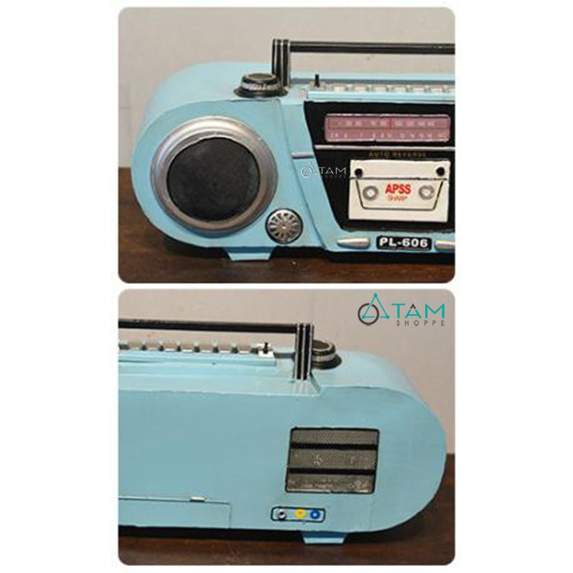 [LỚN BẰNG KÍCH THƯỚC THẬT] Máy Cassette Radio mô hình sắt Vintage màu Xanh MHS-RADIO-03