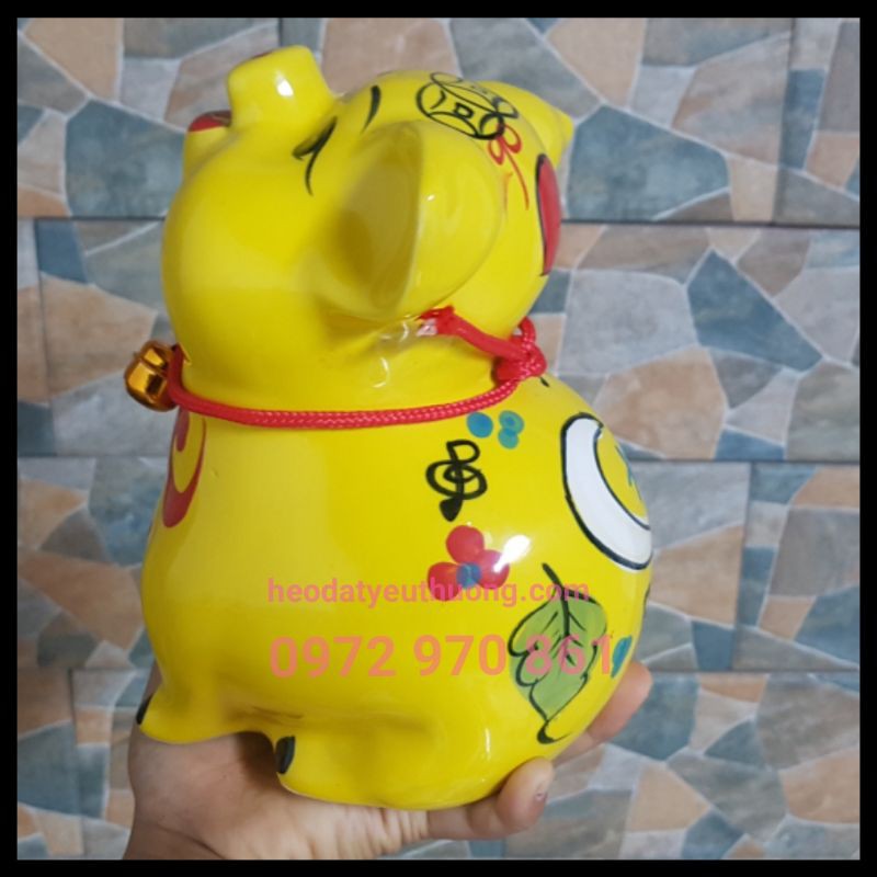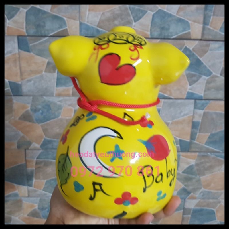 Heo được làm từ đất trắng nung trên 1.250 độ C. Heo bóng,bền đẹp mãi mãi. Heo được đổ dày dặn và những họa tiết hoa văn vẽ trên heo đều được thợ vẽ thủ công bằng tay . em này nhỏ nhưng cũng không nhỏ quá. Để trên bàn làm việc hoặc bàn học cho bé cũng rất đẹp 😍.... Ngoài ra bạn cho bé học tiết kiệm thì em này chứa được cũng khá nhiều tiền đó ạ.... ^^!