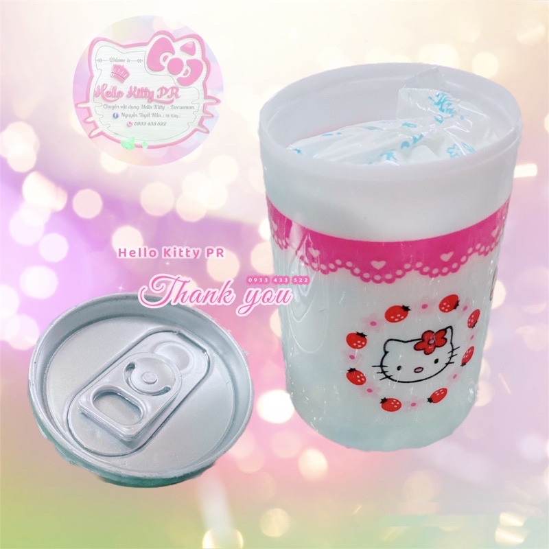Lon đựng khăn giấy ướt có móc khóa treo Hello Kitty