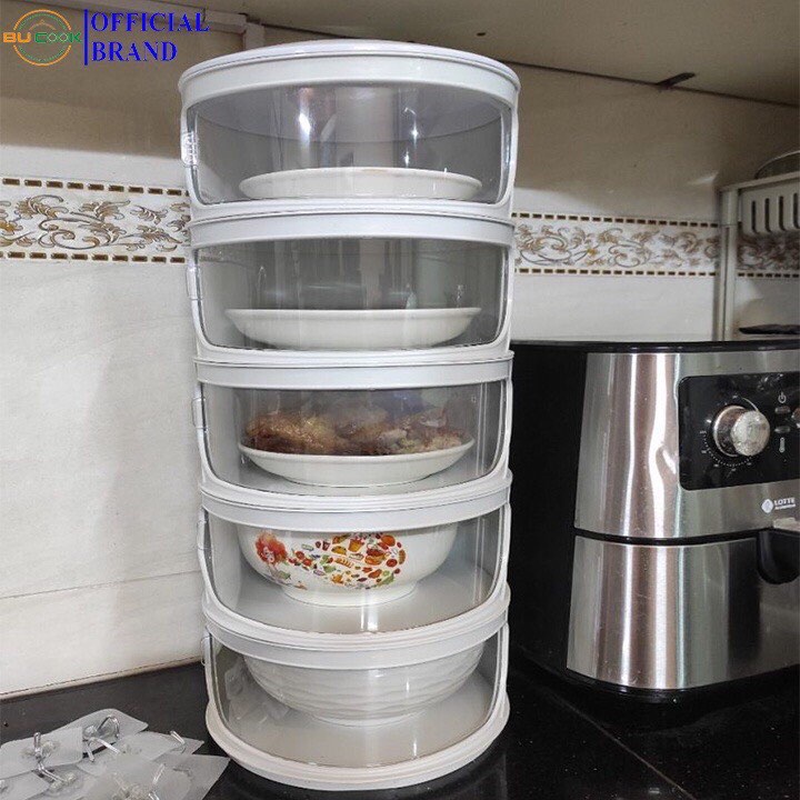 Lồng bàn 5 tâng cao cấp giữ nhiệt chống bụi bảo vệ thức ăn không bị biến đổi chất dinh dưỡng- Màu Sắc : Trắng - Kích thước: 26x26x56 cm