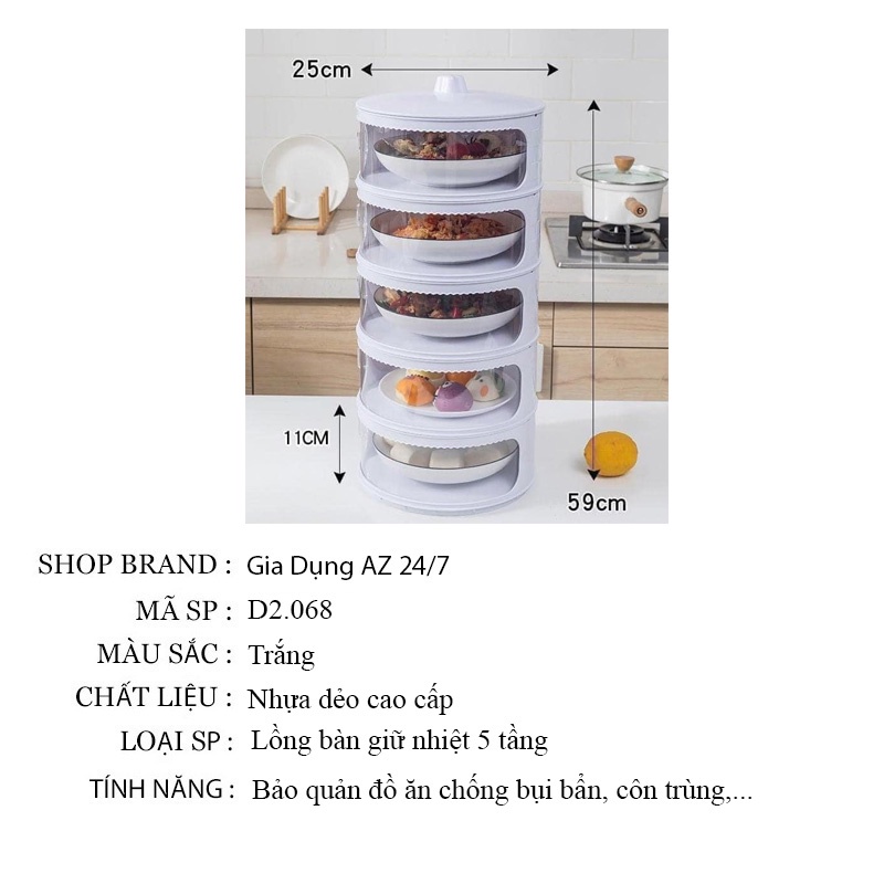 Giới thiệu Lồng bàn 5 tầng giữ nhiệt đậy bảo quản thức ăn chống bụi bẩn côn trùng hộp đựng thực phẩm nhiều ngăn cao cấp AZ D2.068