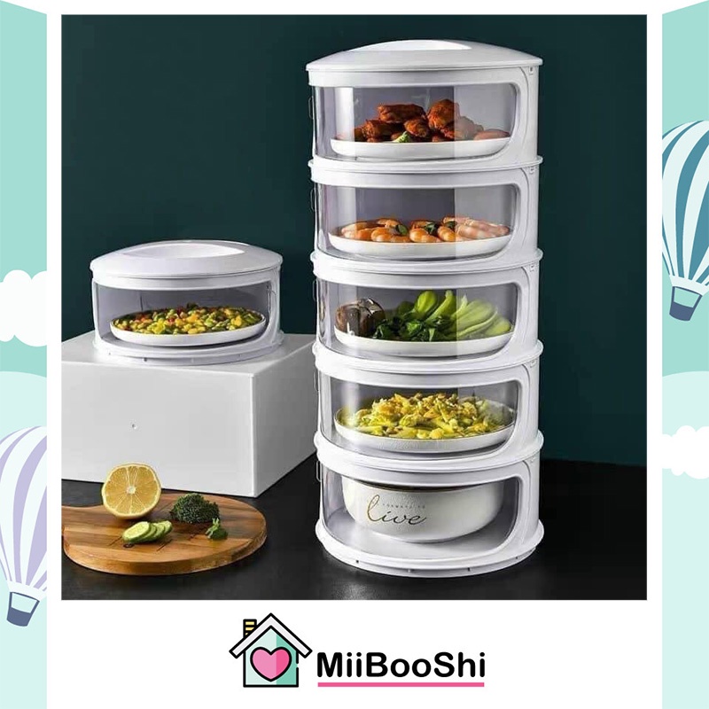 Lồng bàn 5 tầng giữ nhiệt đậy bảo quản thức ăn chống bụi bẩn côn trùng nhiều ngăn cao cấp MiibooShi D2.068