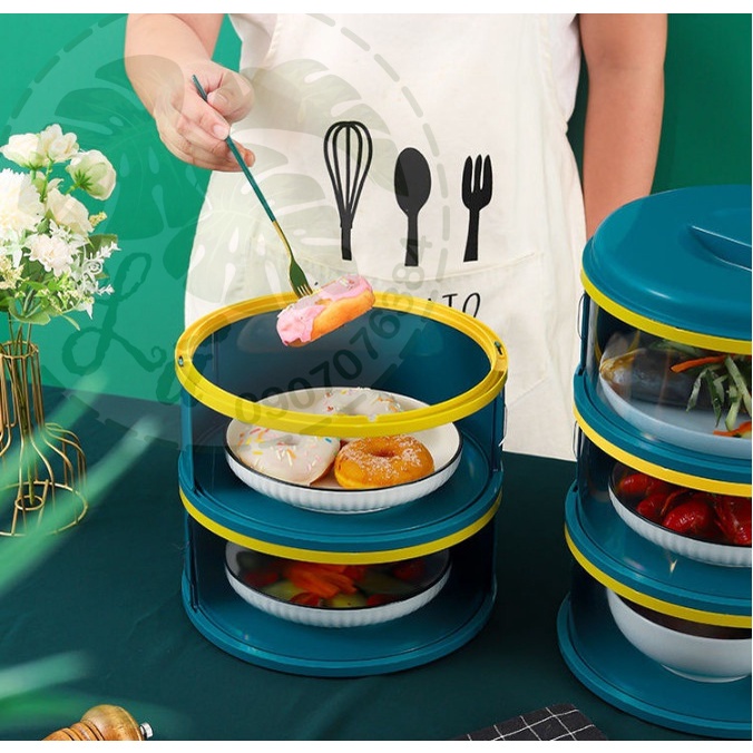 Lồng bàn 5 tầng giữ nhiệt thông minh nhiều tầng gấp gọn, Hộp bảo quản thực phẩm chống bụi tiện dụng
