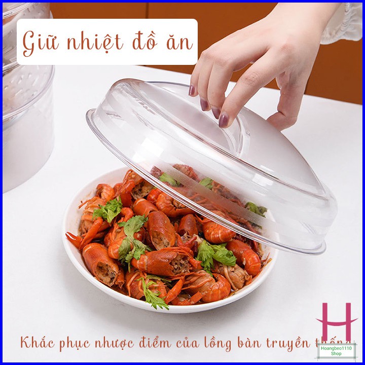 - Ngoài ra, lồng bàn còn có cả nắp đậy thiết kế hình vòng cung với điểm giao hẹp ở giữa nắp, giúp bạn dễ dàng cầm nắm chắc chắn tránh được côn trùng muỗi bụi bẩn, dễ dàng vệ sinh.