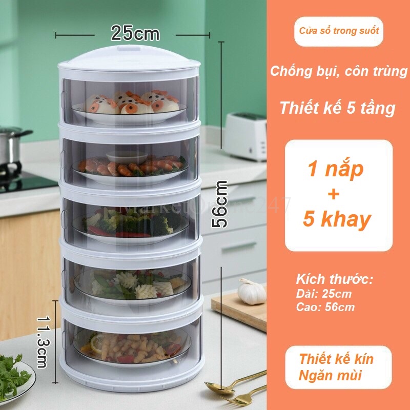 Lồng bàn đựng thức ăn nắp xoay 5 tầngThông số kỹ thuật: