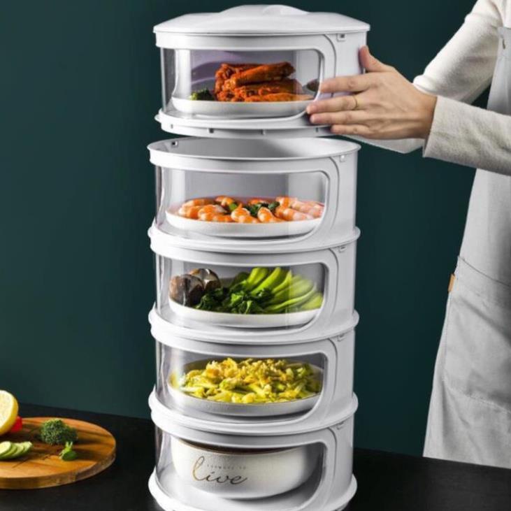 – Tính ứng dụng Lồng bàn đựng thức ăn nắp xoay 5 tầng