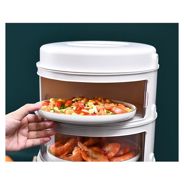Lồng Bàn đậy Thức Ăn Nhiều Tầng Giữ Nhiệt - Hộp Đựng Lưu Trữ Thức Ăn Chống Bụi An ToànThiết kế tiện lợi: Từng tầng có các nắp trượt kéo ra vào nhanh chóng mà không ảnh hưởng tới các tầng khác.