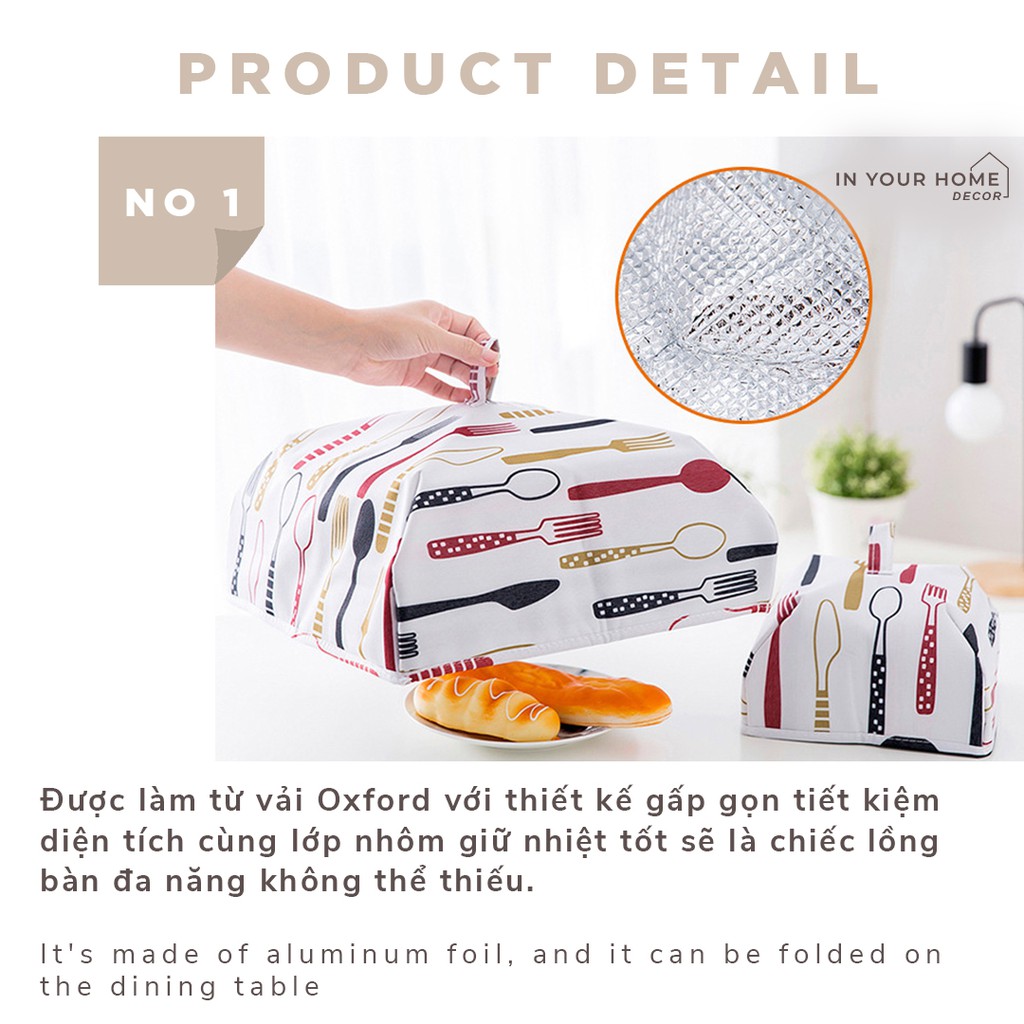 - Được làm từ vải Oxford với thiết kế gấp gọn tiết kiệm diện tích cùng lớp nhôm giữ nhiệt tốt sẽ là chiếc lồng bàn đa năng không thể thiếu.