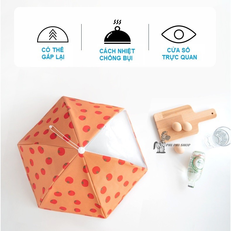 - Kéo rút để đóng gọn và mở ra dễ dàng. Tiết kiệm không gian bảo quản so với lồng bàn nhựa truyền thống.