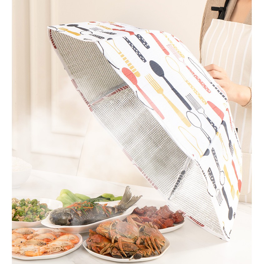 👉 Kích thước: đường kính 67cm x cao 23cm👉 Bề mặt lồng bàn là lớp vải dày, không thấm nước. Bên trong là lớp giấy bạc giữ nhiệt giúp thức ăn luôn nóng