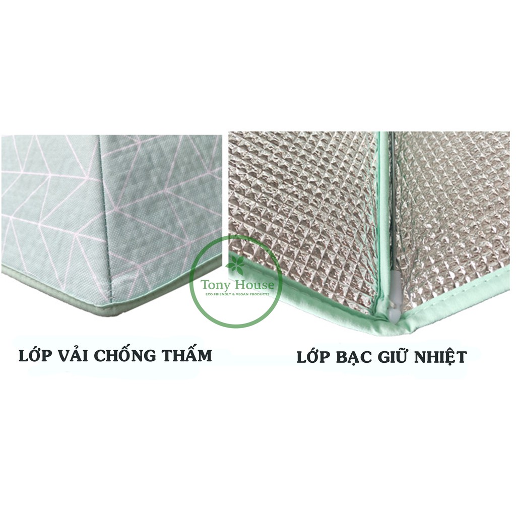 Chất liệu: lớp vỏ vải không thấm nước, đệm và lớp bạc giữ nhiệt