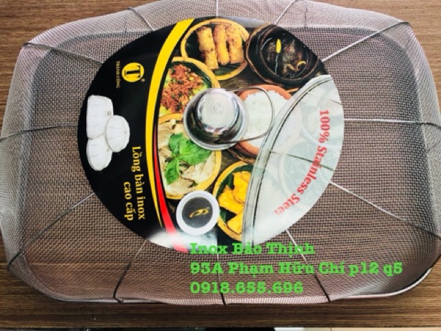 Lồng bàn được thiết kế từ inox cao cấp,chống gỉ sét,có độ bền cao.Được thiet ke chắc chắn,tính thẩm mỹ cao giúp cho bàn ăn gia đình trở nen sach dep.