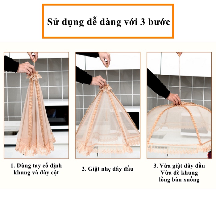 ✅ Chỉ với vài thao tác đơn giản là rút dây toàn bộ chiếc lồng bàn thu lại nhỏ gọn.