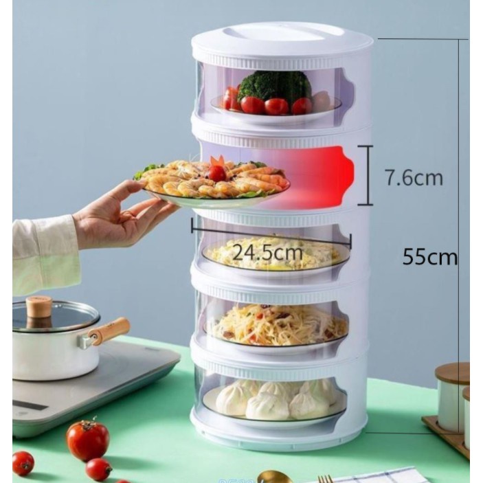 Giới thiệu Lồng bàn nhiều tầng giữ nhiệt 5 gấp gọn thông minh đậy thức ăn mini đa năng nhựa trong suốt