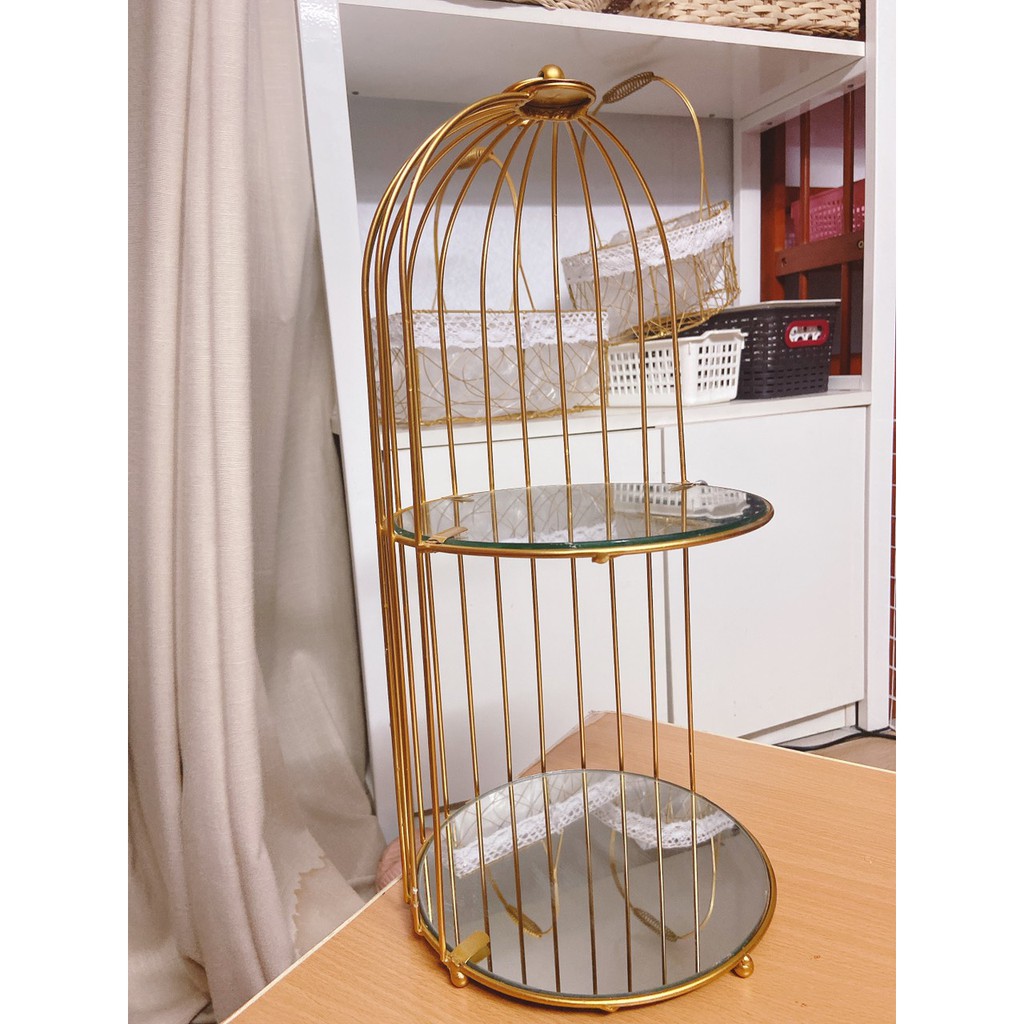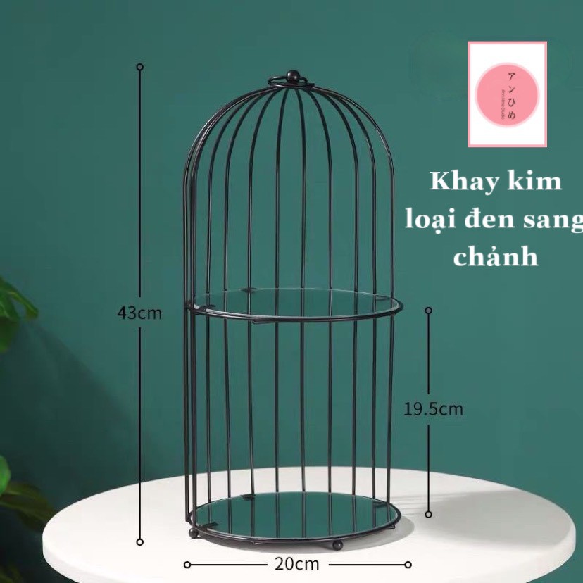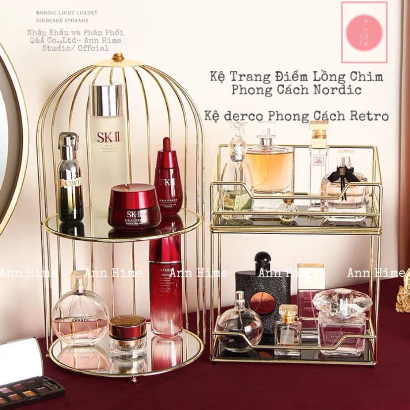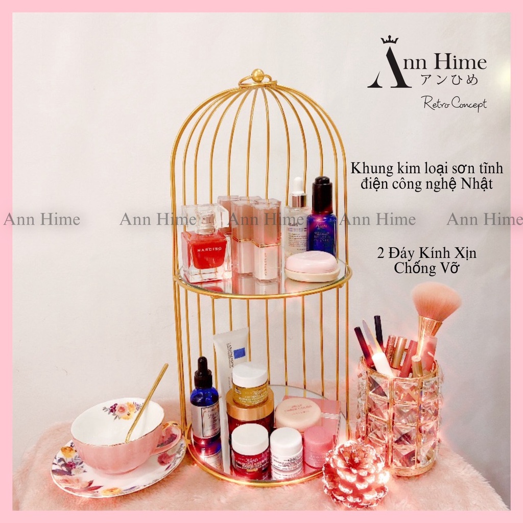 Lồng Chim Đựng Mỹ Phẩm Đồ Trang Điểm Để Bàn Đế Kính Mạ Vàng 2 Tầng Cao Cấp Ann Hime Tmp05
