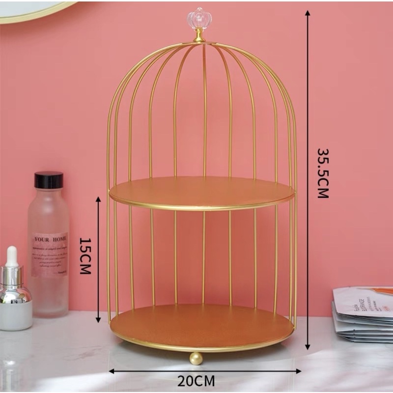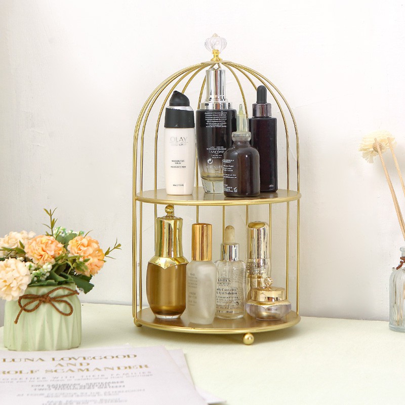 Nhà cửa & Đời sống > Sắp xếp nhà cửa > Kệ sách để bàn || Lồng chim sắt đựng mỹ phẩm, đế đựng bánh và trang trí bàn trang điểm phong cách Bắc ÂuCòn hàng