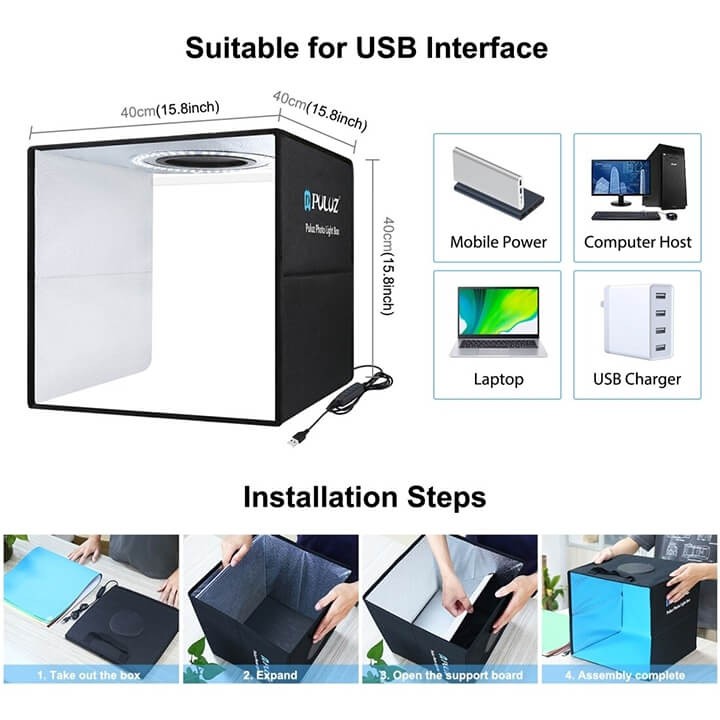 Cameras & Flycam > Phụ kiện máy ảnh > Thiết bị ánh sáng và phòng chụp || LỒNG CHỤP SẢN PHẨM 40X40CM TÍCH HỢP ĐÈN LED PULUZCòn hàng