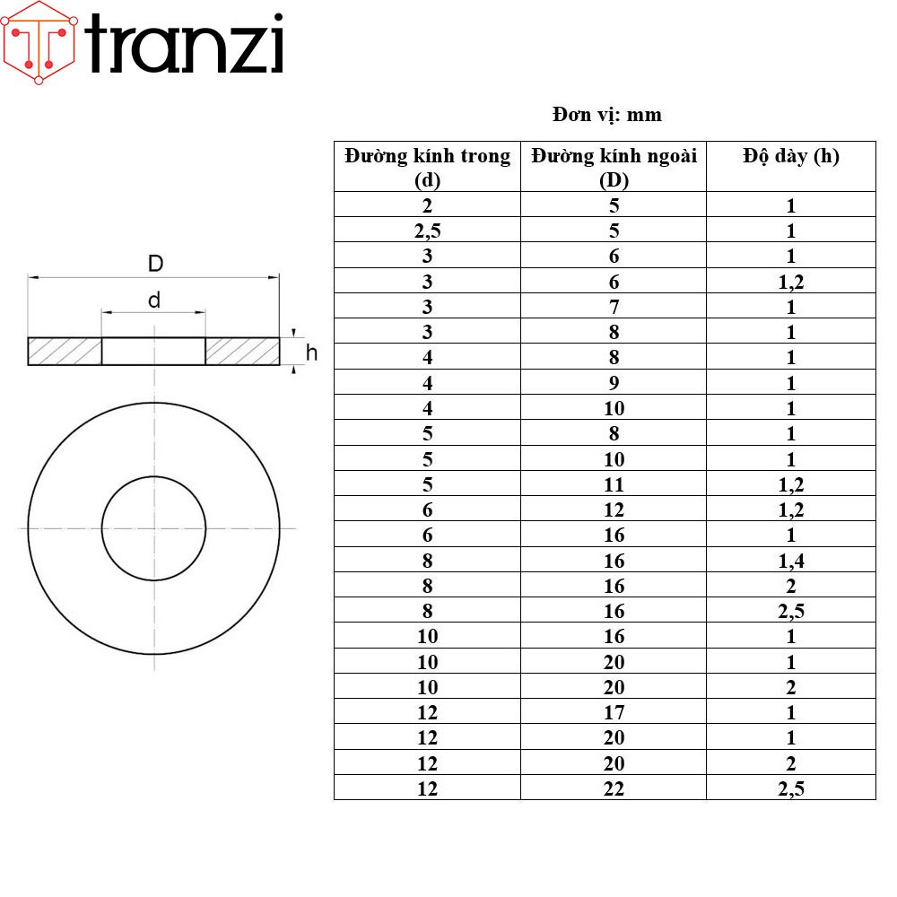- Đường kính trong d x Đường kính ngoài D x Độ dày h (mm):