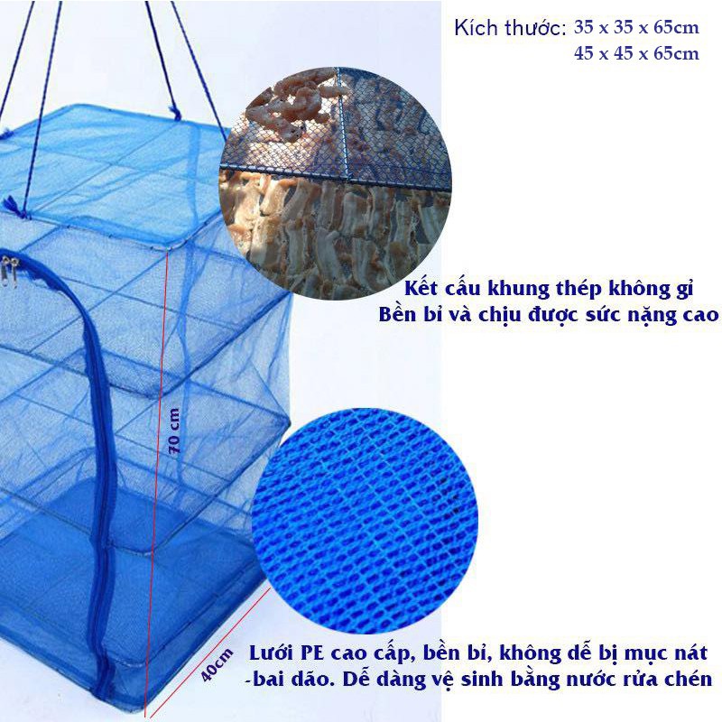 🔷♦️Lồng Phơi Thực Phẩm, Phơi Cá Khô Chống Ruồi Muỗi, Côn Trùng Bằng Lưới PE Dễ Dàng Vệ Sinh,Thu Gọn✔️Chi tiết sản phẩm: Chất liệu: PE Màu sắc: xanh dương