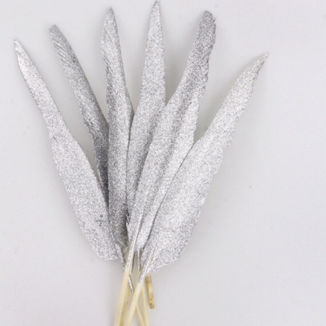 ☘️Lông vũ tự nhiên phủ nhũ kim tuyến mặt trước lông vũ. Có khoảng 20 màu nhưng ở đây shop chỉ đăng 2 màu vàng và bạc. nếu b nào cần màu khác thì để lại lưu ý khi đặt hàng hoặc chat với shop nhé.☘️Lông dài 15-25cm