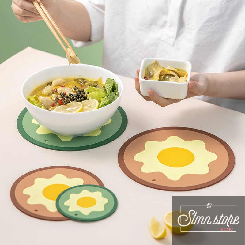 Nhà cửa & Đời sống > Bộ đồ bàn ăn > Khay, tấm lót bàn ăn || Lót bàn ăn hình Trứng Chiên chống trơn trượt, lót nồi hoạt hình, lót nồi silicone chịu nhiệt. SD1_LNoi-TrungCòn hàng