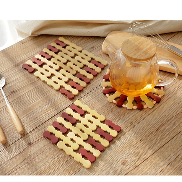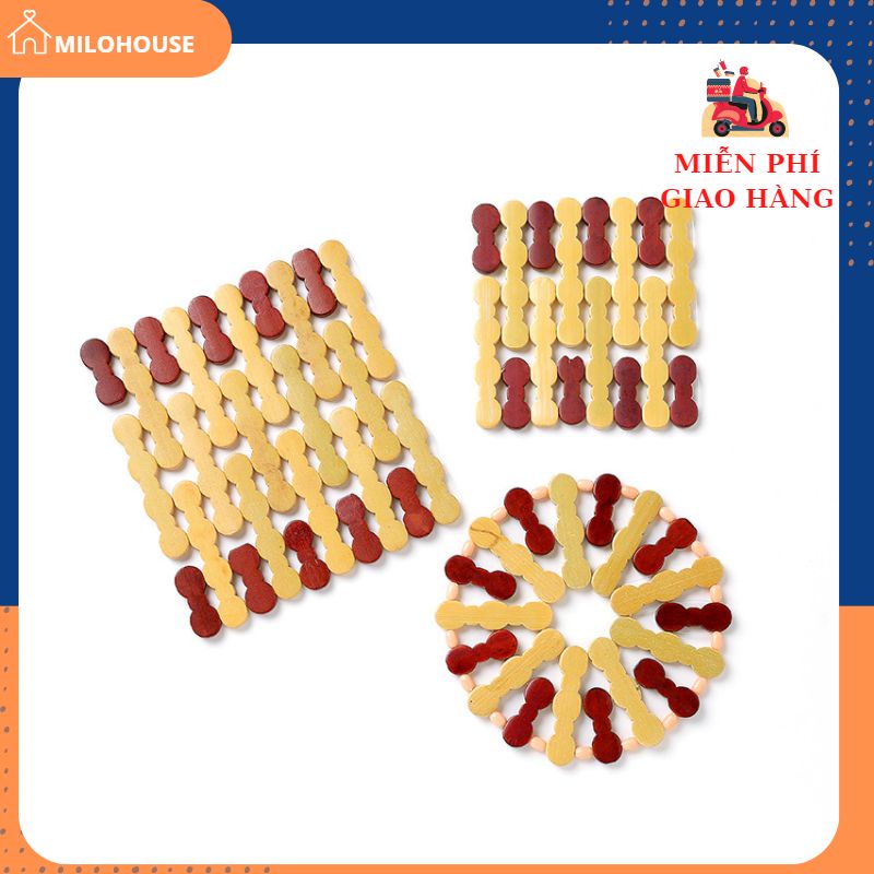 - Đế lót nồi bằng gỗ được gia công hoàn toàn bằng chất liệu gỗ tre gọn nhẹ, cứng cáp.