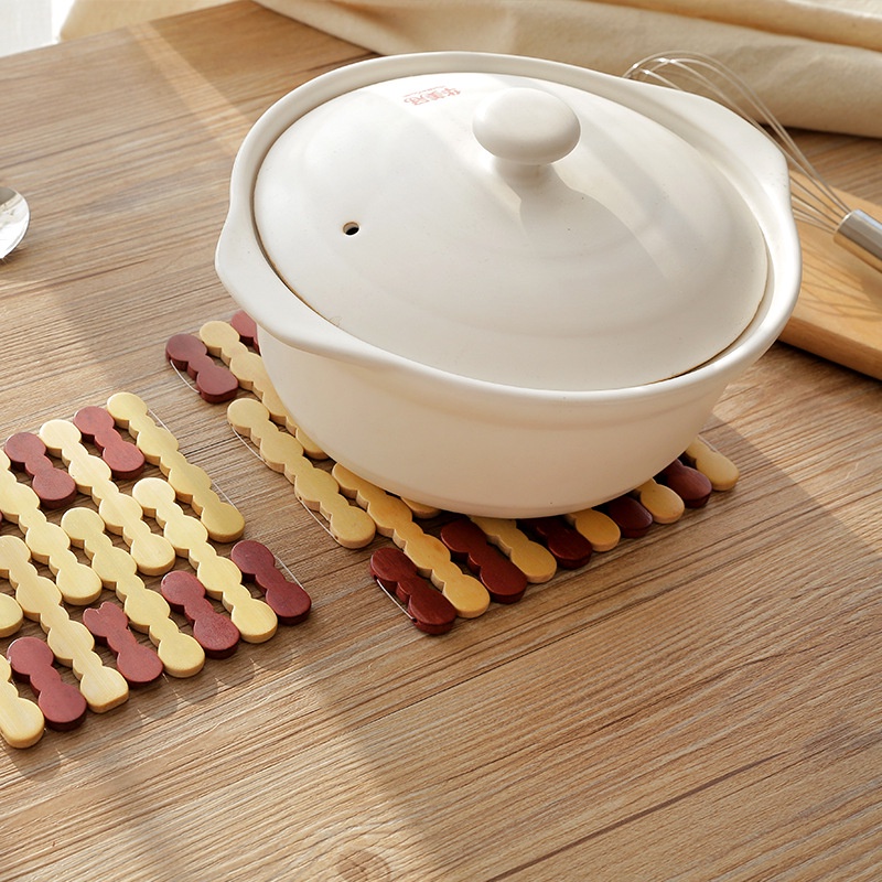Đế lót nồi bằng gỗ tiện dụng bền chắc cho Thời gian sử dụng lâu dài. Bạn có thể dùng rế lót nồi cơm, canh, kho… để không bị bỏng tay khi bưng nồi từ bếp đến bàn ăn. Với kích thước vuông, gọn, được khắc các họa tiết ngộ nghĩnh đẹp mắt, đế lót nồi bằng gỗ cũng là 1 vật dụng trang trí giúp cho bàn ăn của gia đình bạn thêm sinh động và lạ mắt.
