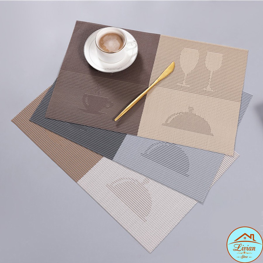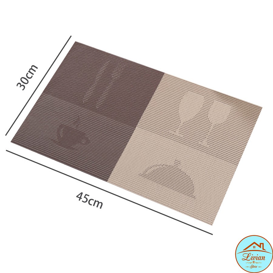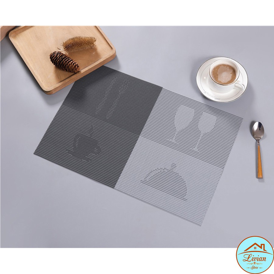 Nhà cửa & Đời sống > Bộ đồ bàn ăn > Khay, tấm lót bàn ăn || Tấm lót bàn ăn chống thấm, tấm lót trang trí bàn ăn họa tiết 4 ô hình ly dĩa dễ thươngCòn hàng
