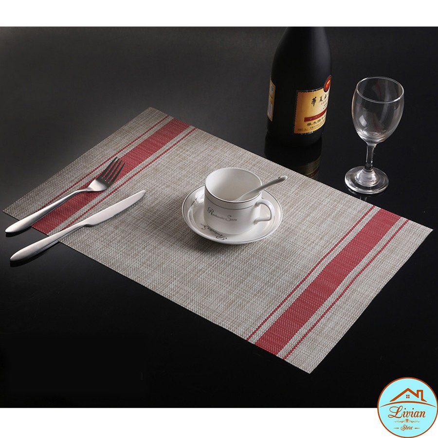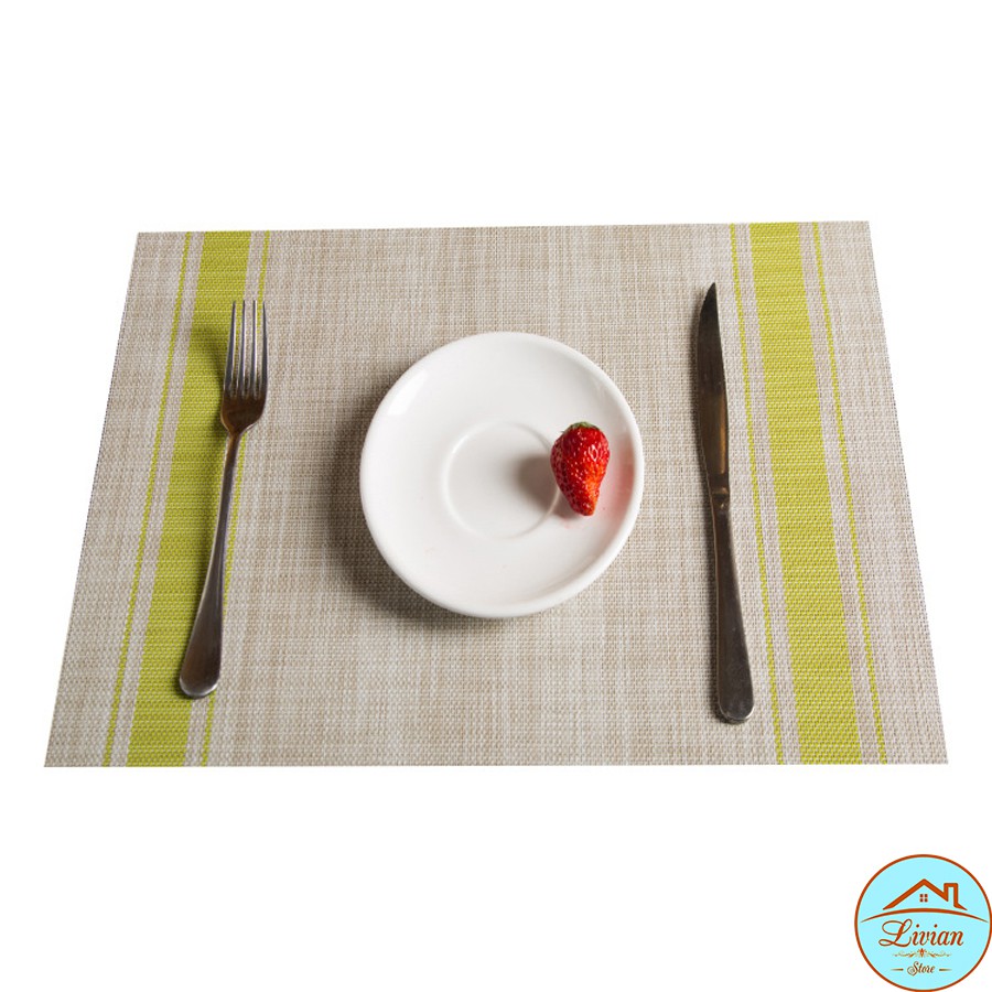 Nhà cửa & Đời sống > Bộ đồ bàn ăn > Khay, tấm lót bàn ăn || Tấm lót bàn ăn chữ nhật cách nhiệt chống trơn trượt nền kem viền kẻ sọcCòn hàng