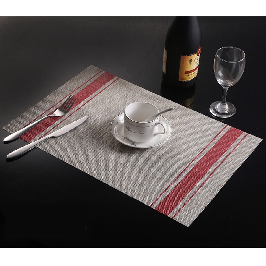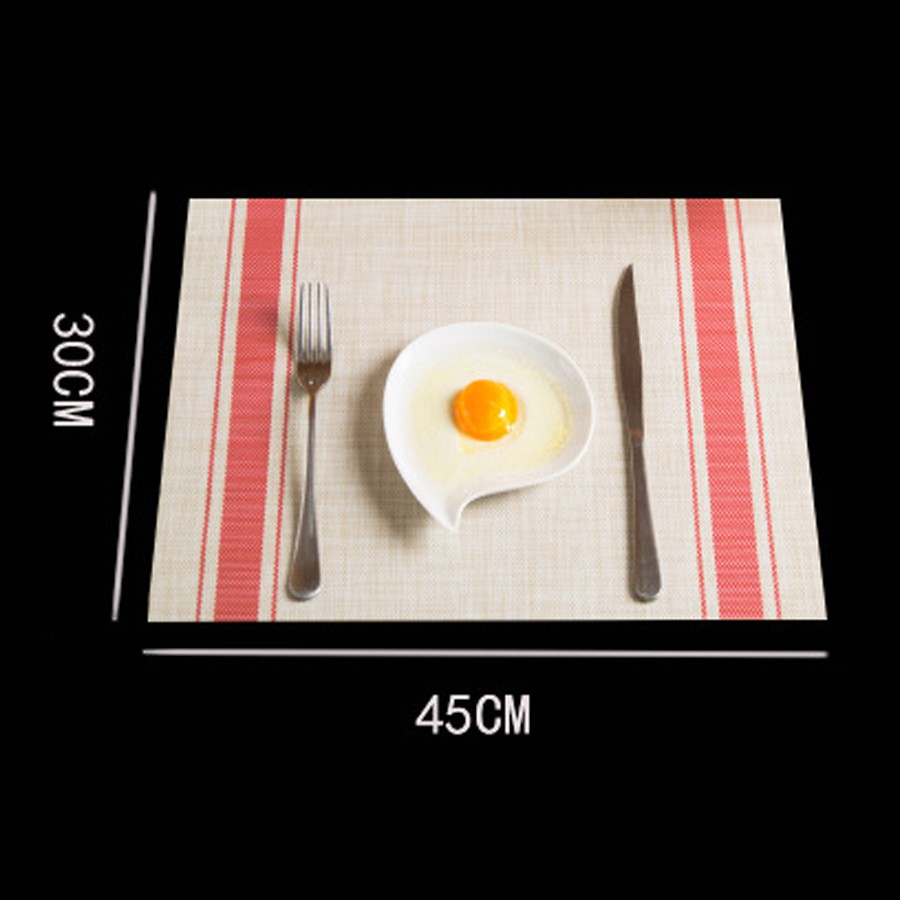 Nhà cửa & Đời sống > Bộ đồ bàn ăn > Khay, tấm lót bàn ăn || Tấm lót bàn ăn chữ nhật cách nhiệt trang trí bàn ăn nền kem viền kẻ sọcCòn hàng