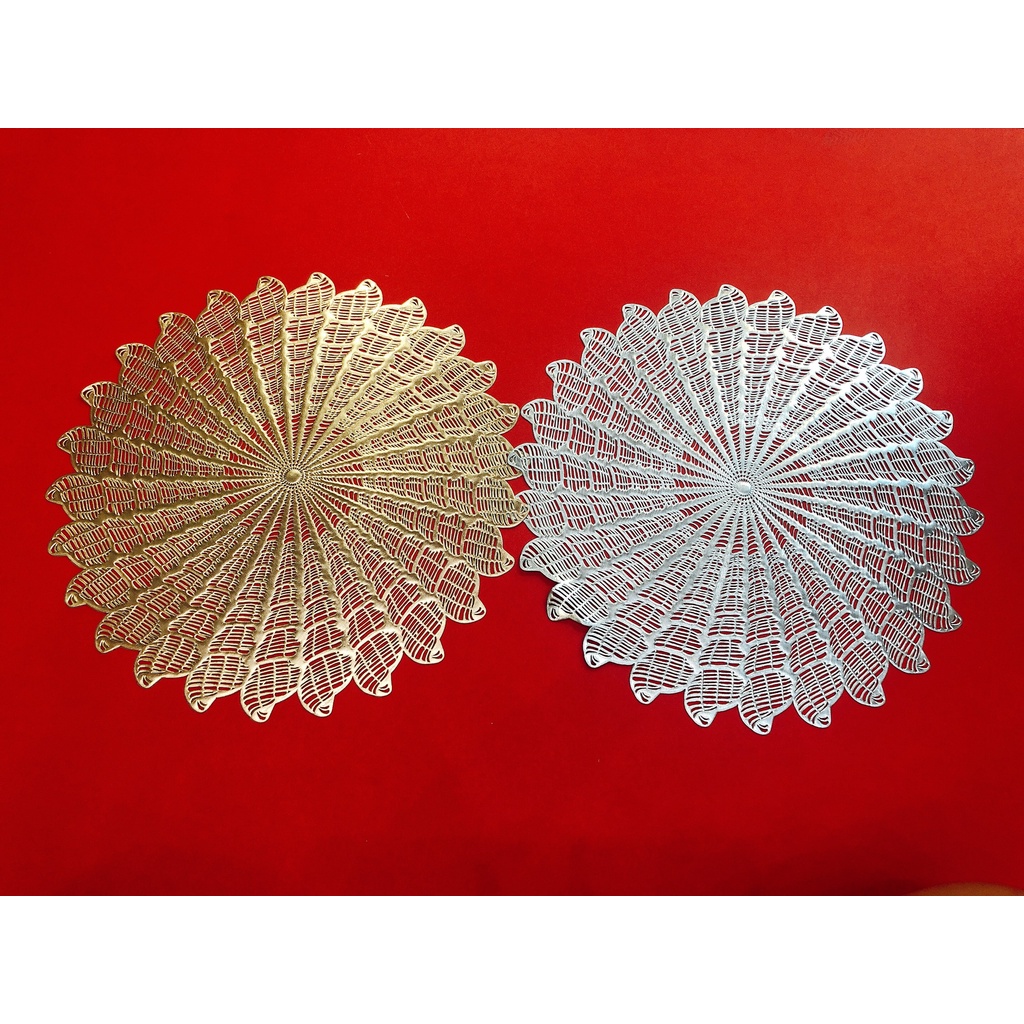Nhà cửa & Đời sống > Bộ đồ bàn ăn > Khay, tấm lót bàn ăn || Tấm lót bàn ăn, lót lọ hoa, placemat, nhựa dẻo màu bạc, đường kính 38cm, xinh, rẻ, tiện lợiCòn hàng