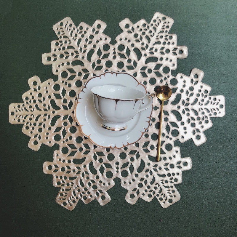 Tấm lót bàn ăn, lót lọ hoa, placemat, nhựa dẻo màu bạc và vàng, đường kính 38cm, xinh, rẻ, tiện lợi