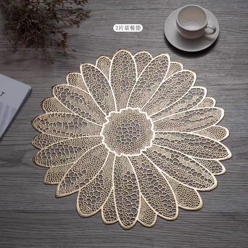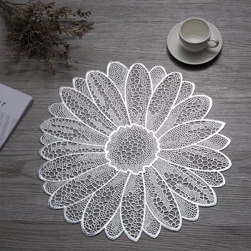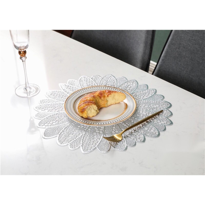Tấm lót bàn ăn, lót lọ hoa, placemat, nhựa dẻo màu bạc và vàng, đường kính 38cm, xinh, rẻ, tiện lợi