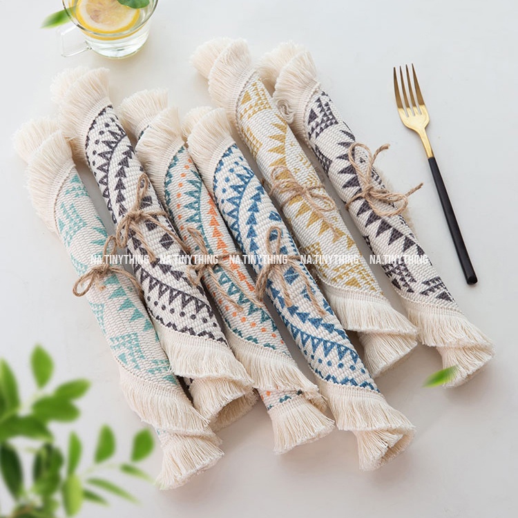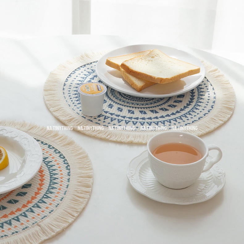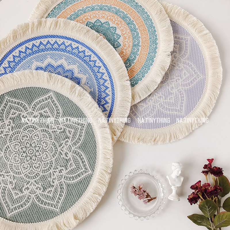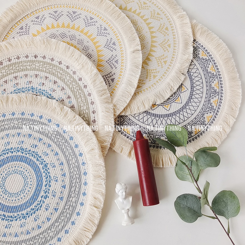 Nhà cửa & Đời sống > Bộ đồ bàn ăn > Khay, tấm lót bàn ăn || Tấm lót bàn ăn, miếng lót bình hoa, đế lót tròn hoạ tiết thổ cẩm phong cách Bắc Âu Boho Bohemian NA0057Còn hàng