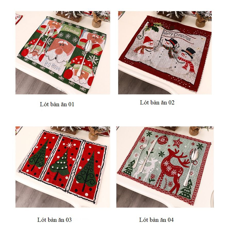 Giới thiệu Tấm lót bàn ăn nâu nhạt, xanh lá chất liệu vải kate 30*45cm trang trí cho ngày giáng sinh thêm lung linh