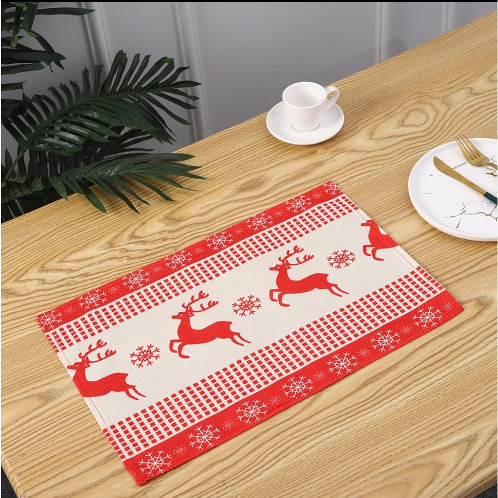 Nhà cửa & Đời sống > Trang trí nhà cửa > Khăn trải bàn || Tấm lót bàn ăn nâu nhạt, xanh lá chất liệu vải kate 30*45cm trang trí cho ngày giáng sinh thêm lung linhCòn hàng