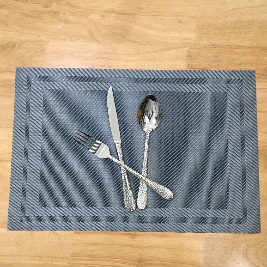 Giới thiệu Tấm lót bàn ăn placemat kẻ viền xám bạc đẹp kích thước 30 x 45cm dành cho bàn ăn gia đình, nhà hàng