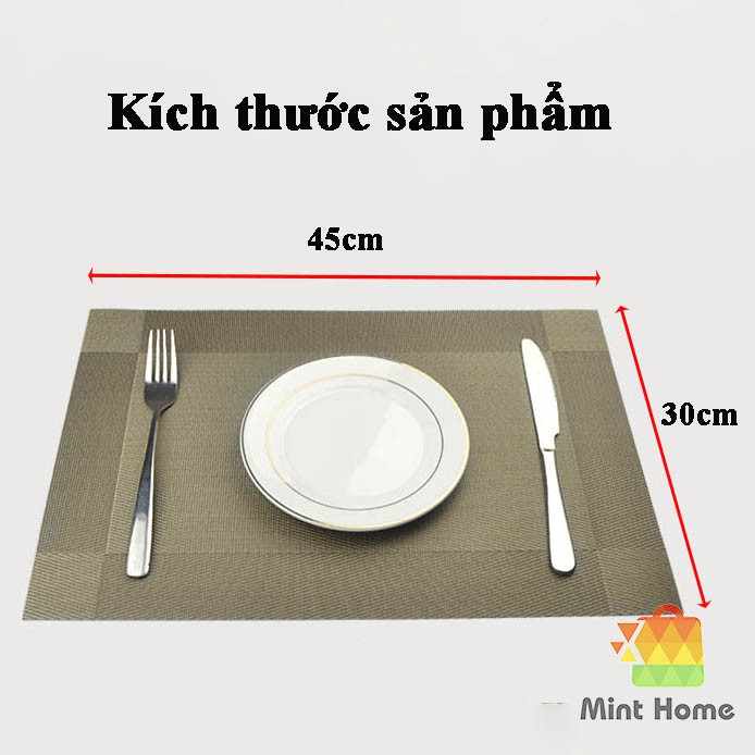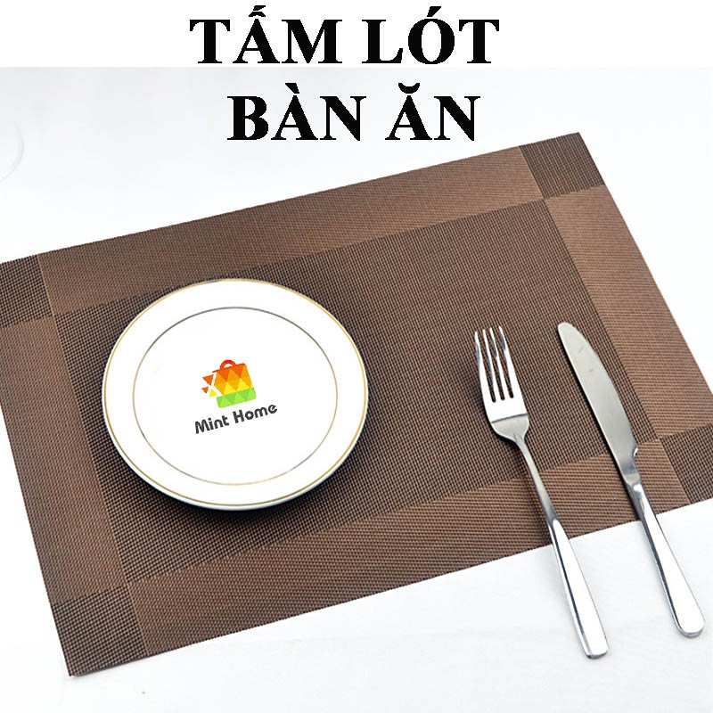 Tấm lót bàn ăn, placemat : miếng thảm trải bàn ăn PVC cách nhiệt, cao cấp, chống trượtSản phẩm thích hợp sử dụng trang trí cho bàn trà; bàn ăn; bàn làm việc tại gia đình; nhà hàng; khách sạn… cho không gian thêm phần sinh động; trang nhã và sang trọng.